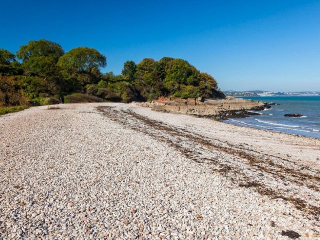 Elberry Cove, also known as Elbury Cove, is a shingle beach surrounded by woodland and fields.